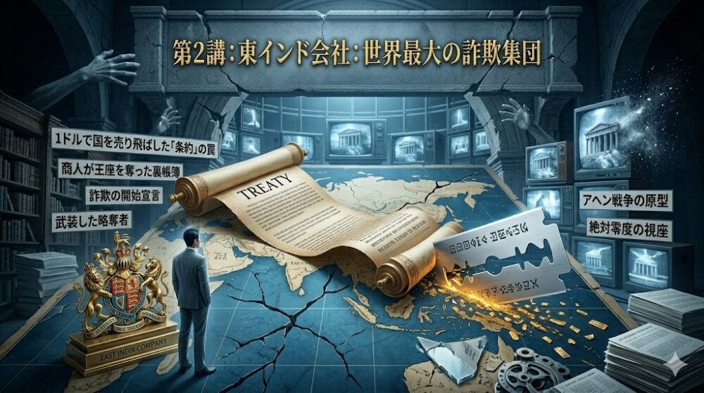 第2講:東インド貿易会社:世界最大の詐欺集団 1ドルで国を売り飛ばした「条約」の罠。商人が王座を奪った裏帳簿 「大航海時代」という響きに、あなたは冒険とロマンを感じるだろうか? もしそうなら、あなたの歴史観は […]