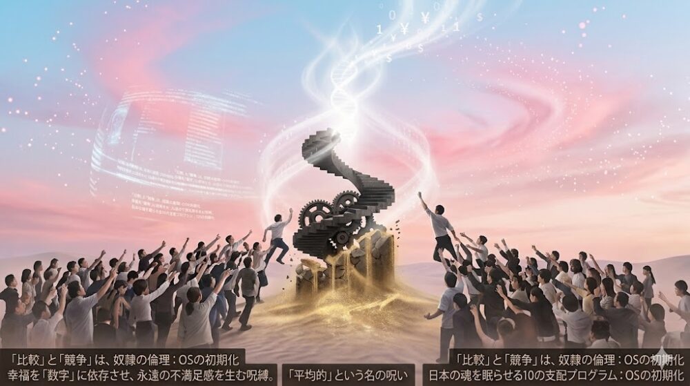 ー第3講:比較と競争の毒 ー幸福を「数字」に依存させ、永遠の不満足感を生む呪縛。 【導入:終わりのないレースの号砲】 テストの点数、偏差値、年収、フォロワー数、いいね!の数。 私たちはオムツを履いている頃から、常に何かと […]