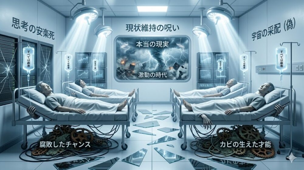第15講:「すべては最善」の欺瞞 ―― 思考を殺し、改善を拒む「運命論」の呪縛 「起きたことはすべて最善」「宇宙の采配は完璧だ」。 不運や失敗に直面した者に投げかけられる、 この甘い慰め。 だが、絶対零度の視座でその機能 […]